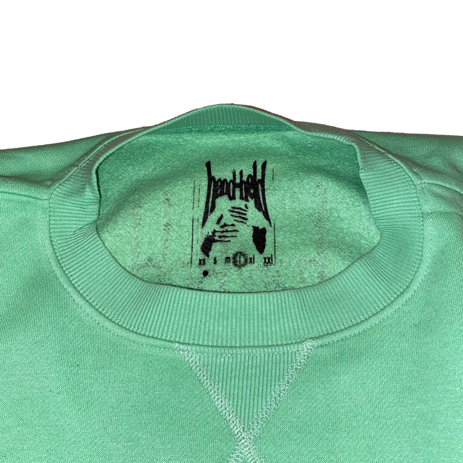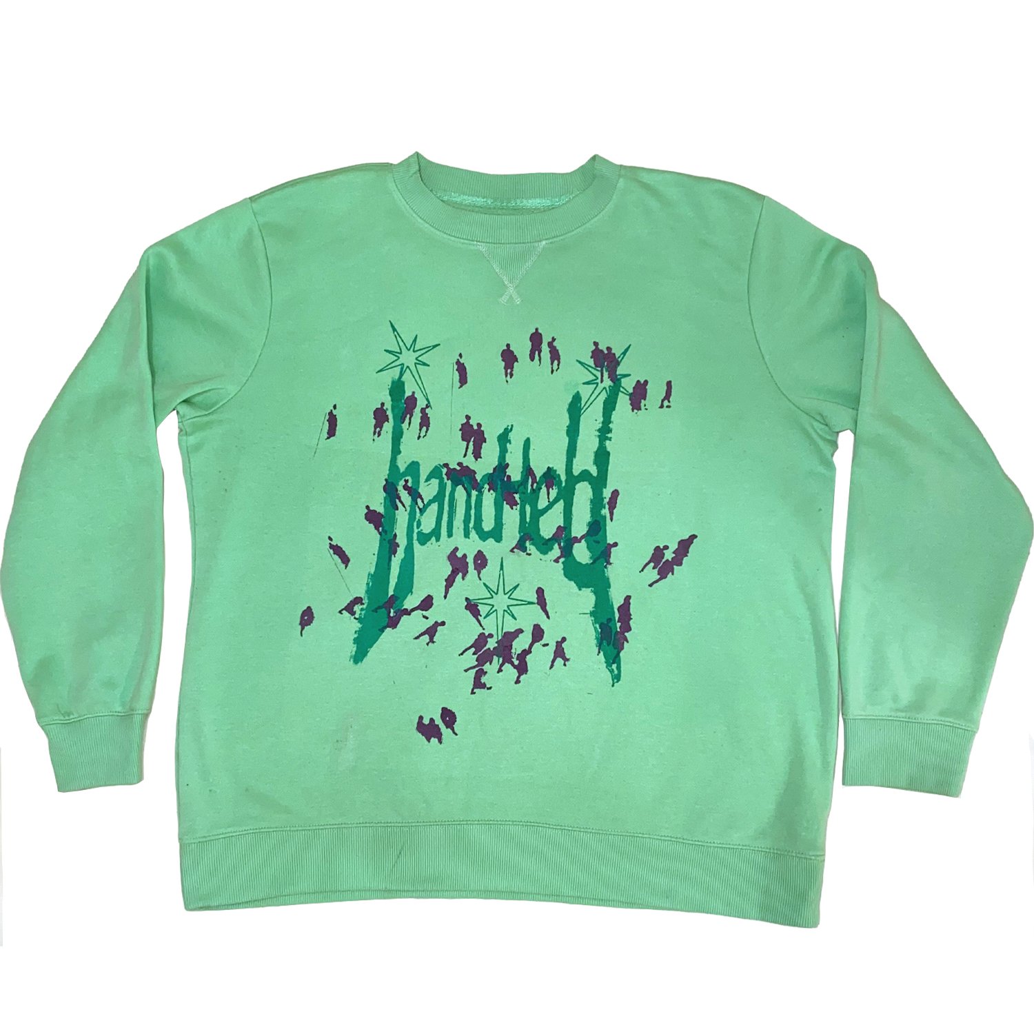printed on a green sweatshirt